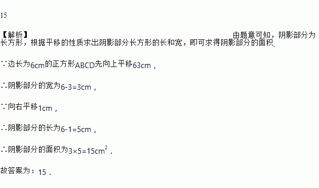 如图,将边长为6cm的正方形ABCD先向上平移3cm,再向右平移1cm,得到正方形A′B′C′D′,此时阴影部分的面积为______cm2.