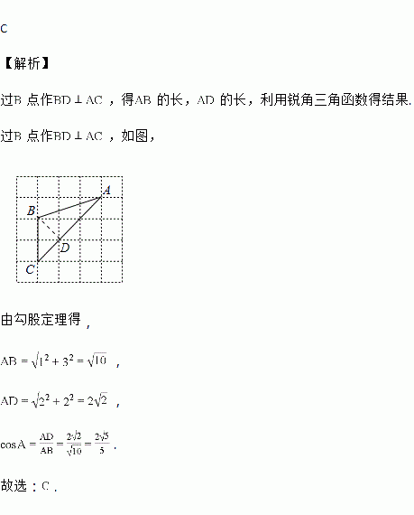 如图,已知△ABC的三个顶点均在格点上,则cosA的值为( )