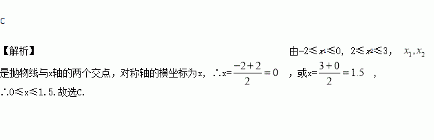 A. -2≤x≤0 B. 2≤x≤3 C. 0≤x≤1.5 D. 0≤x≤2