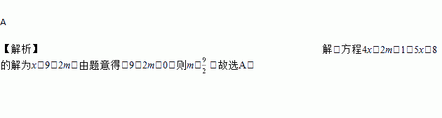 关于x的方程4x-2m+1=5x-8的解是负数,则m的取值范围是( )