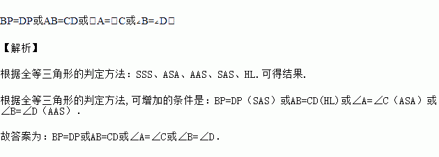 如图,已知AC⊥BD于点P,AP=CP,请增加一个条件,使△ABP≌△CDP(不能添加辅助线),你增加的条件是_________________________________