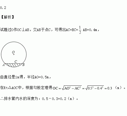 如图,水平放置的圆柱形排水管道的截面直径是1m,其中水面的宽AB为0.8m,则排水管内水的深度为 m.