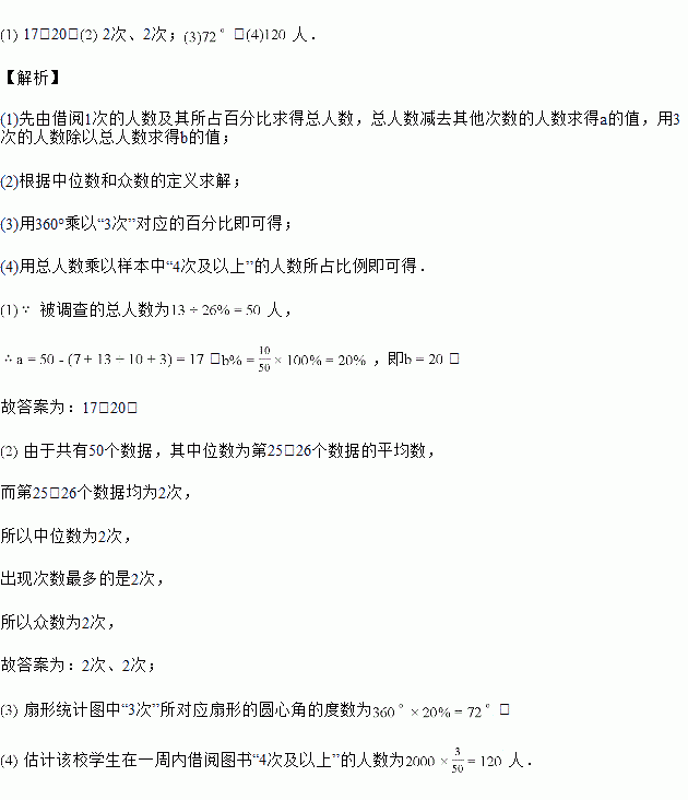 Èô¸ÃУ¹²ÓÐ2000ÃûѧÉú£¬¸ù¾Ýµ÷²é½á¹û£¬¹À¼Æ¸ÃУѧÉúÔÚÒ»ÖÜÄÚ½èÔÄͼÊé¡°4´Î¼°ÒÔÉÏ¡±µÄÈËÊý£®![]()