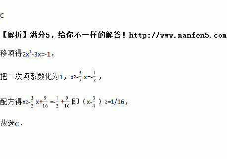 一元二次方程2x2﹣3x+1=0化为(x+a)2=b的形式,正确的是( )