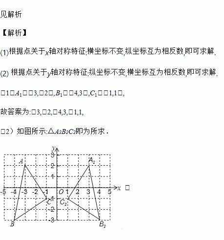 (2)在图中作出△ABC关于y轴对称图形△A2B2C2.