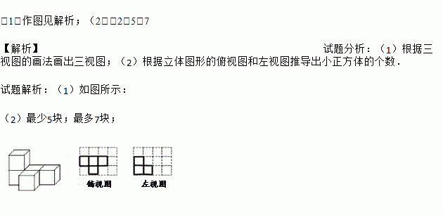 (2)用小立方体搭一几何体,使得它的俯视图和左视图与你在右图方格中所画的图一致,则这样的几何体最少要________个小立方块,最多要________个小立方块。