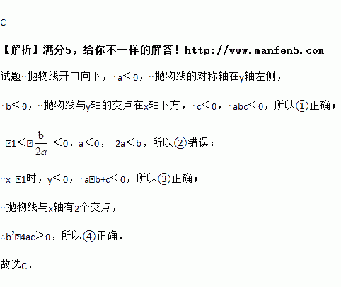 若抛物线y=ax2+bx+c如图所示,下列四个结论: