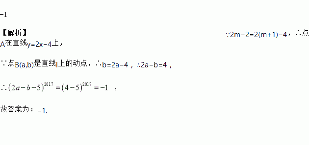 无论m取什么实数,点A(m+1,2m﹣2)都在直线l上.若点B(a,b)是直线l上的动点,(2a﹣b﹣5)2017的值等于__.