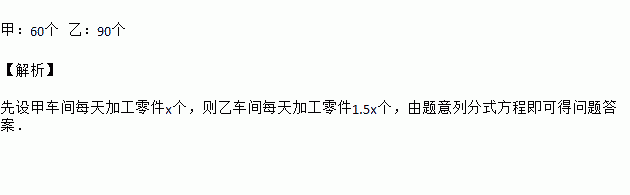 某工厂承担了加工2100个机器零件的任务,甲车间单独加工了900个零件后,由于任务紧急,要求乙车间与甲车间同时加工,结果比原计划提前12天完成任务.已知乙车间的工作效率是甲车间的1.5倍,求甲、乙两车间每天加工零件各多少个?