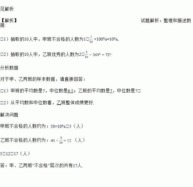 (1)甲班的平均数是7,中位数是_____;乙班的平均数是_____,中位数是7;