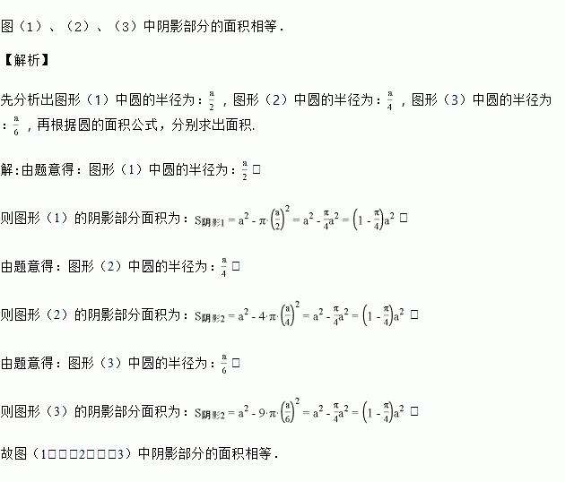 分别计算图(1)、(2)、(3)中阴影部分的面积,你发现了什么规律?