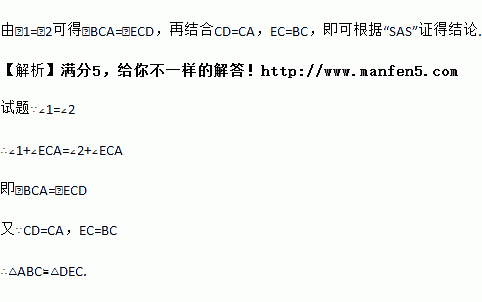 如图所示,CD=CA,∠1=∠2,EC=BC,求证:△ABC≌△DEC