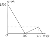 甲、乙两人在一条直线道路上分别从相距1500米的A,B 两点同时出发,相向而行,当两人相遇后,甲继续向点B前进(甲到达点B时停止运动),乙也立即向B点返回.在整个运动过程中,甲、乙均保持匀速运动.甲、乙两人之间的距离y(米)与乙运动的时间x(秒) 之间的关系如图所示.则甲到B点时,乙距B点的距离是________米.