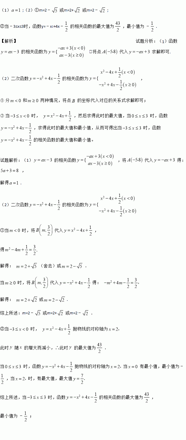 (1)已知点A(﹣5,8)在一次函数y=ax﹣3的相关函数的图象上,求a的值;