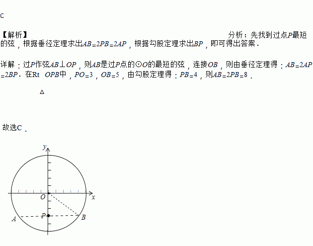 如图,在直角坐标系中,以原点为圆心,半径为5的圆内有一点P(0,﹣3),那么经过点P的所有弦中,最短的弦的长为 ( )