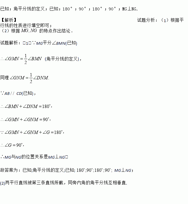 如图,AB∥CD,∠BMN与∠DNM的平分线相交于点G.