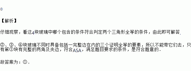 小明不慎将一块三角形的玻璃摔碎成如图所示的四块(即图中标有①,②,③,④的四块),你认为将其中的哪一块带去,就能配一块与原来一样大小的三角形?应该带第_____块.