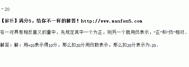 在知识抢答中,如果用+10表示得10分,那么扣20分表示为_____.