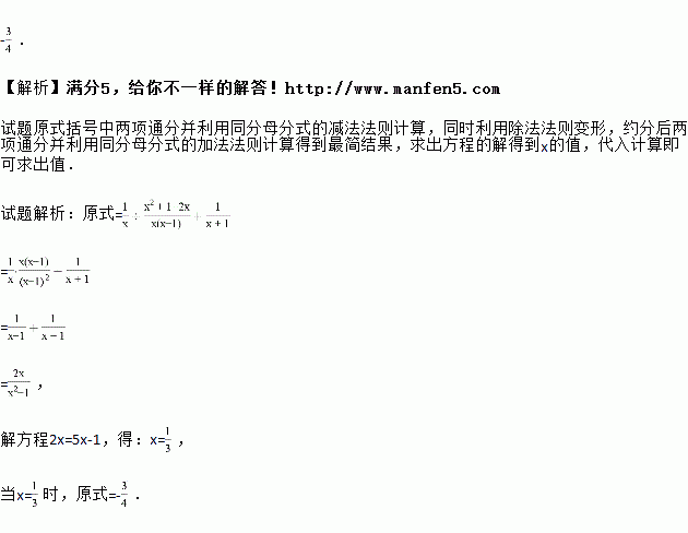 先化简,再求值:,其中x的值为方程2x=5x-1的解.