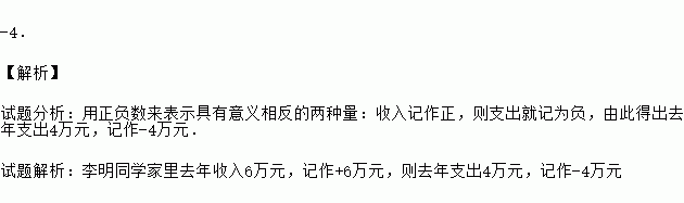 若李明同学家里去年收入6万元,记作+6万元,则去年支出4万元,记作_____万元.