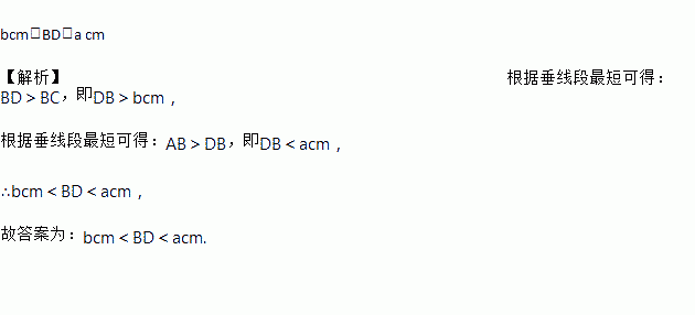如图,AD⊥BD,BC⊥CD,AB=a cm,BC=b cm,则BD的取值范围是________.