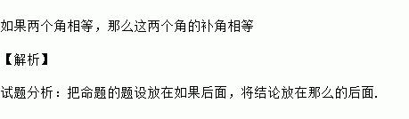 把命题“等角的补角相等”写成“如果……,那么……”形式为: .