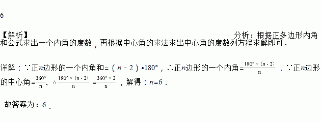 一个正n边形的一个内角等于它的中心角的2倍,则n=___.