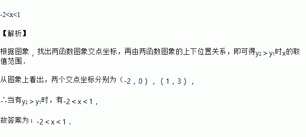 如图是二次函数y1=ax2+bx+c(a≠0)和一次函数y2=mx+n(m≠0)的图象,当y2>y1,x的取值范围是__.