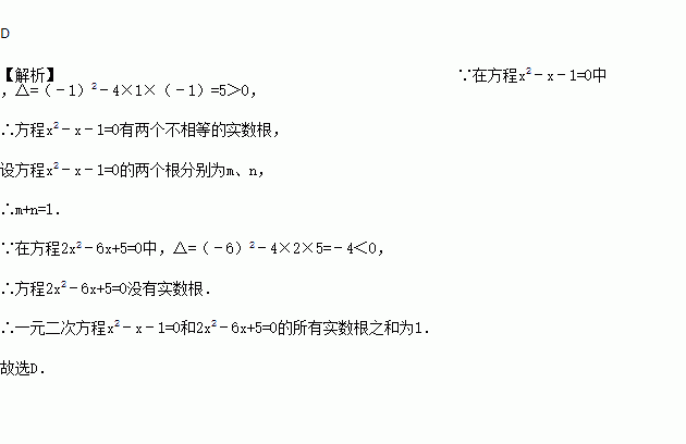 一元二次方程x2﹣x﹣1=0和2x2﹣6x+5=0,这两个方程的所有实数根之和为( )
