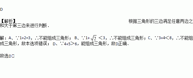 下列长度的三条线段能组成三角形的是( )