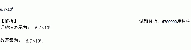 世界文化遗产长城总长约为6700000m,将6700000用科学记数法表示应为_____.