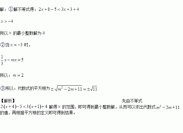 若的最小整数解是方程的解,求代数式的的平方根的值。