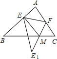 分析:由于△EFM的周长=EM+EF+FM,而EF是定值,故只需在BC上找一点M,使EM+FM最小.如果设E关于BC的对称点为E1,使EM+FM最小就是使E1M+FM最小.