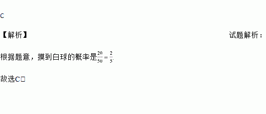一个口袋中共有50个球,其中白球20个,红球20个,蓝球10个,则摸到白球的概率是( )