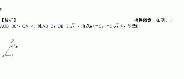 在平面直角坐标系内的机器人接受指令“[α,A]”(α≥0,0°<A<180°)后的行动结果为:在原地顺时针旋转A后,再向正前方沿直线行走α.若机器人的位置在原点,正前方为y轴的负半轴,则它完成一次指令[4,30°]后位置的坐标为( )
