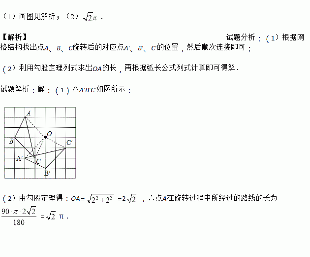 (2)求点A在旋转过程中所经过的路线的长.(结果保留π)