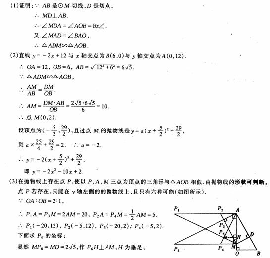 Èçͼ,ÒÑÖªÖ±Ïßy=-2x+12·Ö±ðÓëyÖá,xÖá½»ÓÚA,BÁ½µã,µã MÔÚyÖáÉÏ,ÒÔµãMΪԲÐĵġÑMÓëÖ±ÏßABÏàÇÐÓÚµãD,Á¬½áM D£®