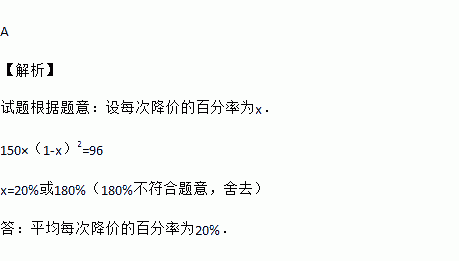 某种衬衣的价格经过连续两次降价后,由每件元降至元,平均每次降价的百分率是( )