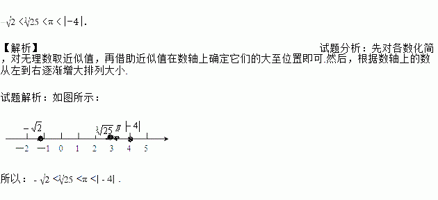在数轴上近似地表示下列各数:π,|-4|,-,.并用“<”把它们连接起来.