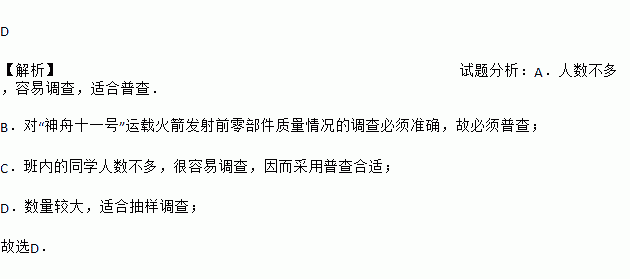 下列调查中,最适合采用抽样调查的是( )
