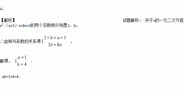 关于x的一元二次方程的两实根分别为2和b,则ab=____。