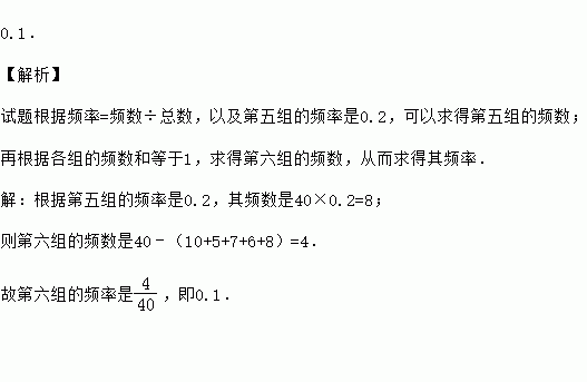已知一组数据有40个,把它分成六组,第一组到第四组的频数分别是10,5,7,6,第五组的频率是0.2,则第六组的频率是 .