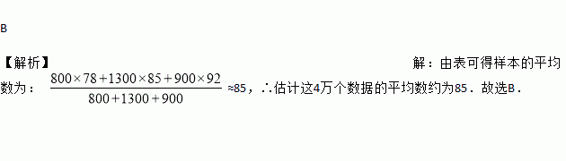 平均数 | 78 | 85 | 92 |