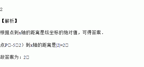 在平面直角坐标系中,点P(-5,2)到轴的距离是______.![]()