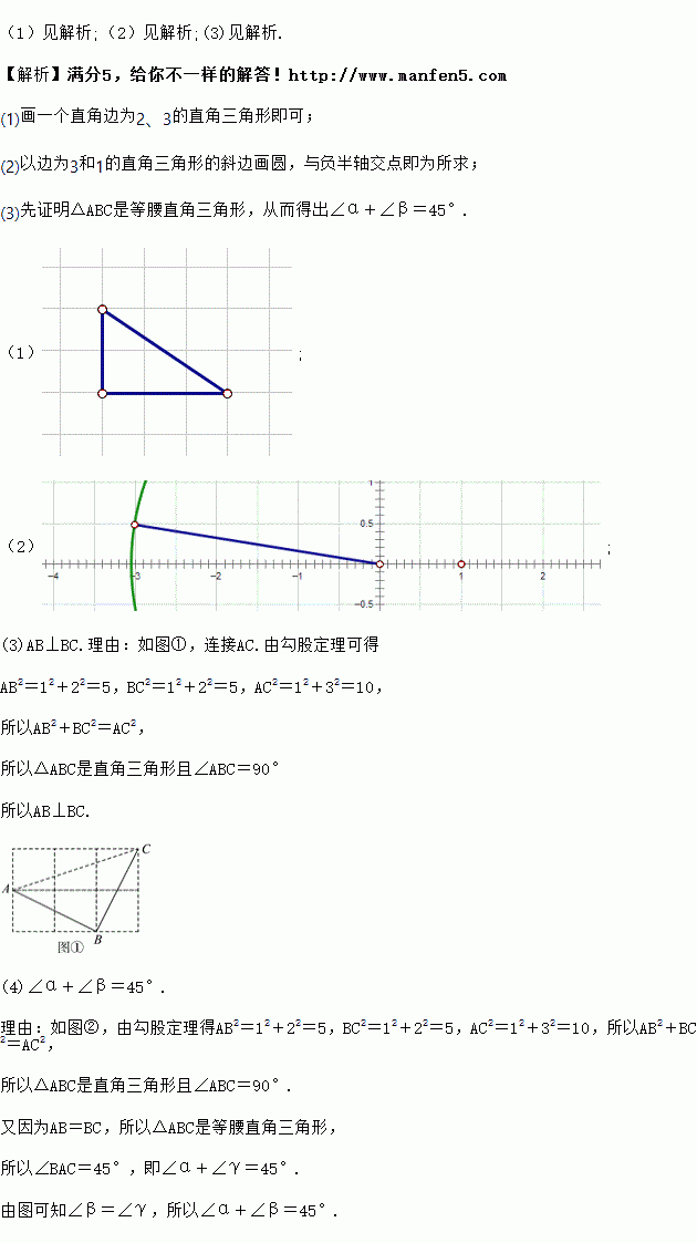 (3)如图②,连接三格和两格的对角线,求∠α+∠β的度数(要求:画出示意图,并说明理由).