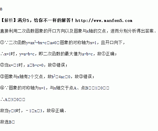 ④当y>0时,﹣1<x<3,其中正确的个数是( )