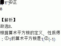 ①1的算术平方根是1;②(-1)2的算术平方根是-1;③一个数的算术平方根等于它本身,这个数只能是零;④-4没有算术平方根.
