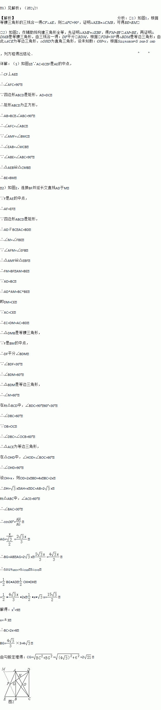 (1)如图1,当AD=DC时,连接CF交AB于M,求证:BM=BE;