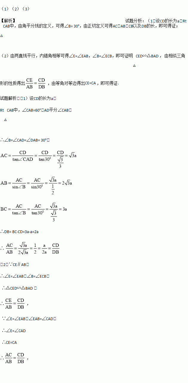 小芳发现:如图3,当△ABC为任意三角形时,过点C作AB的平行线,交AD的延长线于点E,利用此图可以证明
