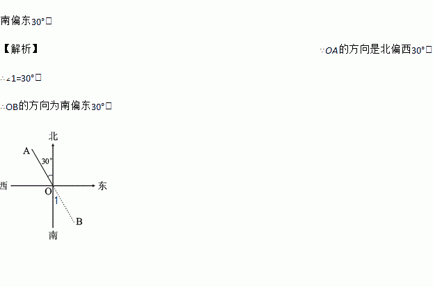 如图,如果OA的方向是北偏西30°,那么OA的反向延长线OB的方向是________________